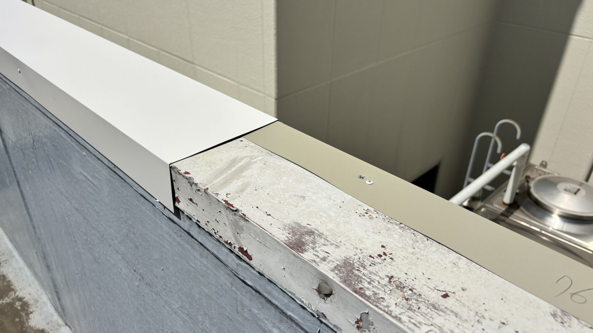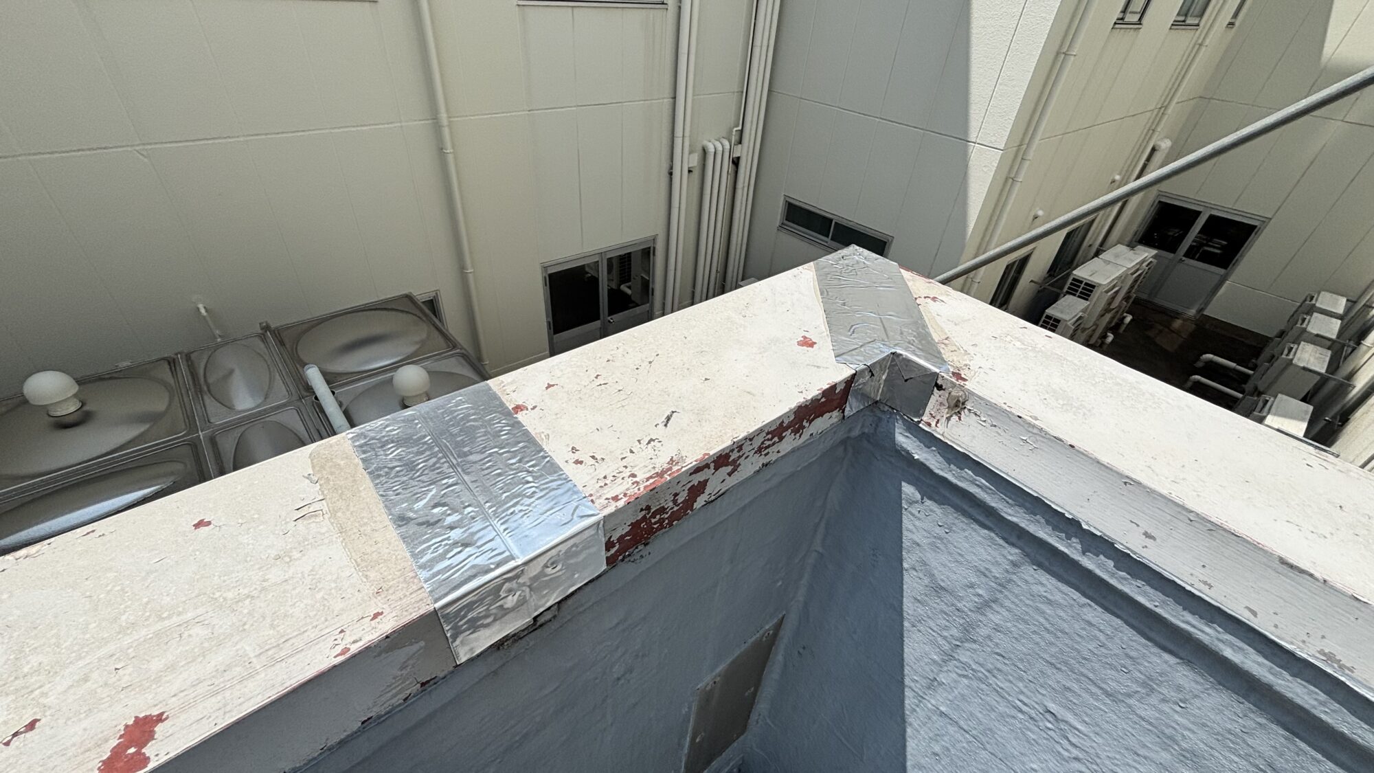 雨漏り再発補修板金カバー強風の巻き返し対策も施し高耐候の板金のカバーをしました。これで長期安心の状態となります。