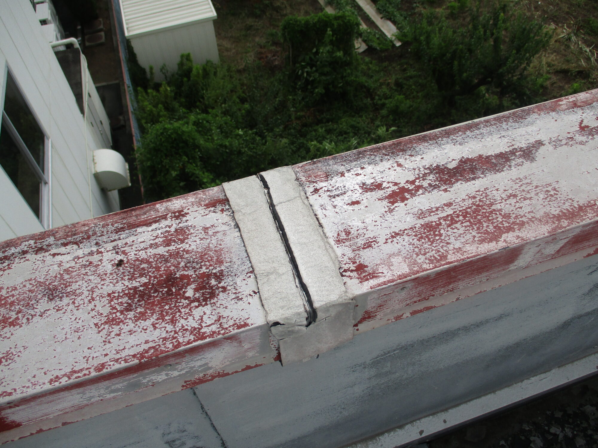 雨漏りの再発補修古いシーリングを除去→金属防水テープで仮塞ぎ